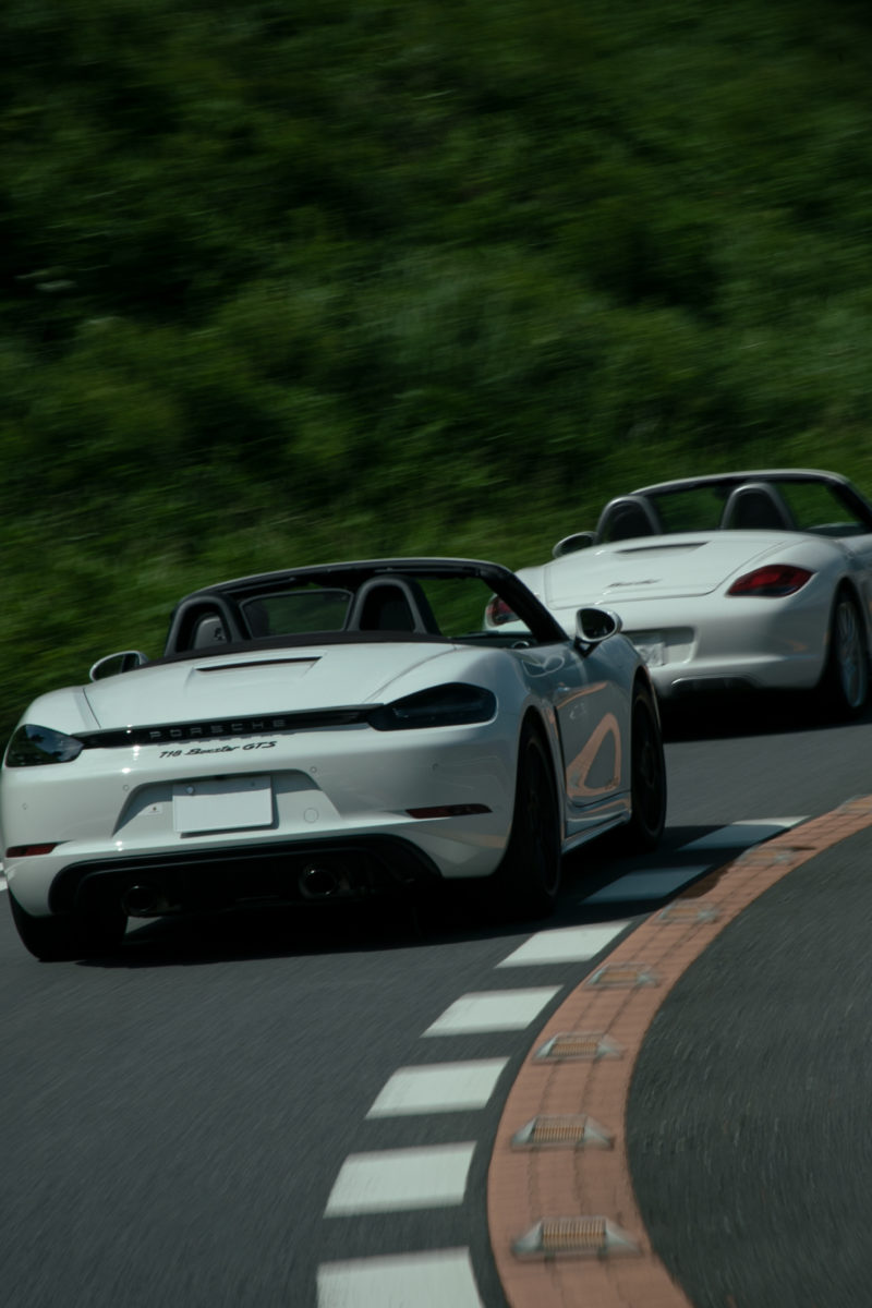 今回試乗するのは987型と718型の2モデル。前者は厳密には987型後期にあたるノーマルグレード。後者は「718ボクスター」と呼ばれるようになった世代。グレードは「GTS」。