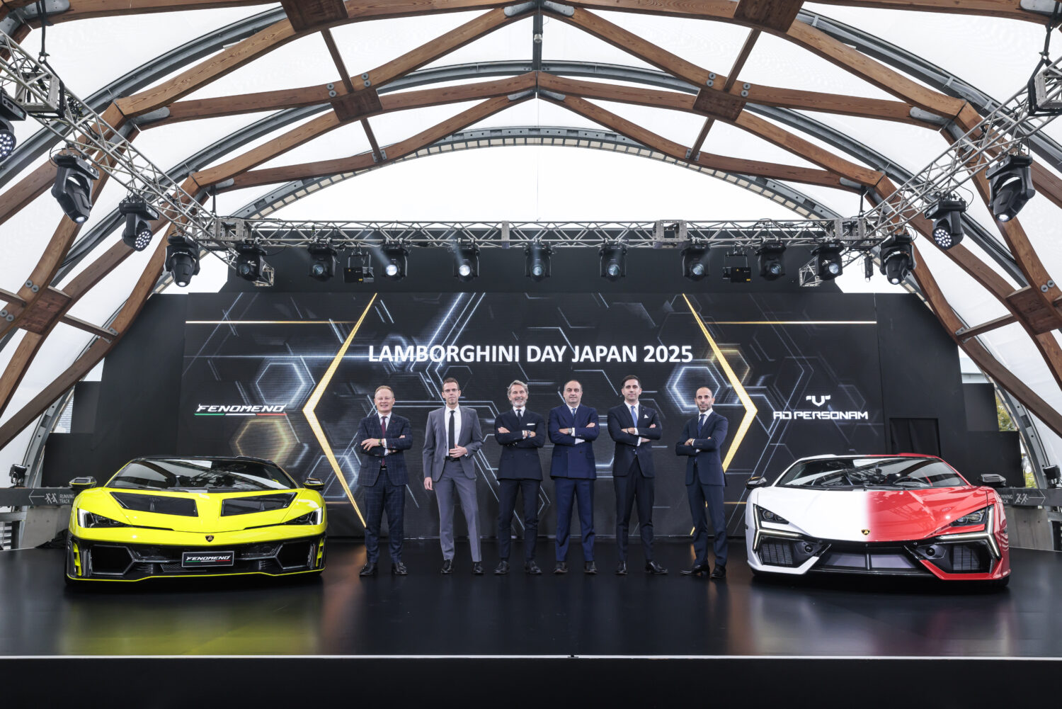 夜には、ランボルギーニ史上最強のV12エンジンを搭載したフェノメノ、そしてランボルギーニのカスタマイズ・プログラムの頂点を体現する特別仕様のレヴエルト・アド・ペルソナムという2台の特別モデルのアジア太平洋プレミアを実施した。