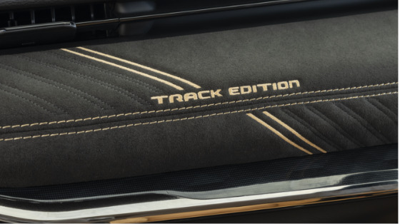 さらに、ジープロゴバッジを従来のクロームからグロスブラックへ変更したうえで専用の“TRACK”バッジを装着することで、限定車ならではの存在感を際立たせている。