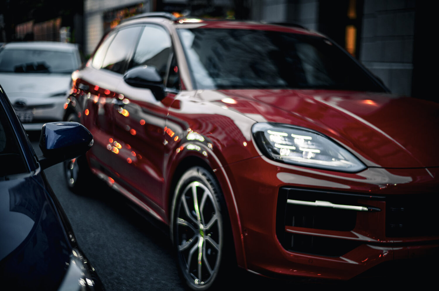 芦屋の住宅街に並んだカイエンの中で、赤は明らかに“特別”だった。