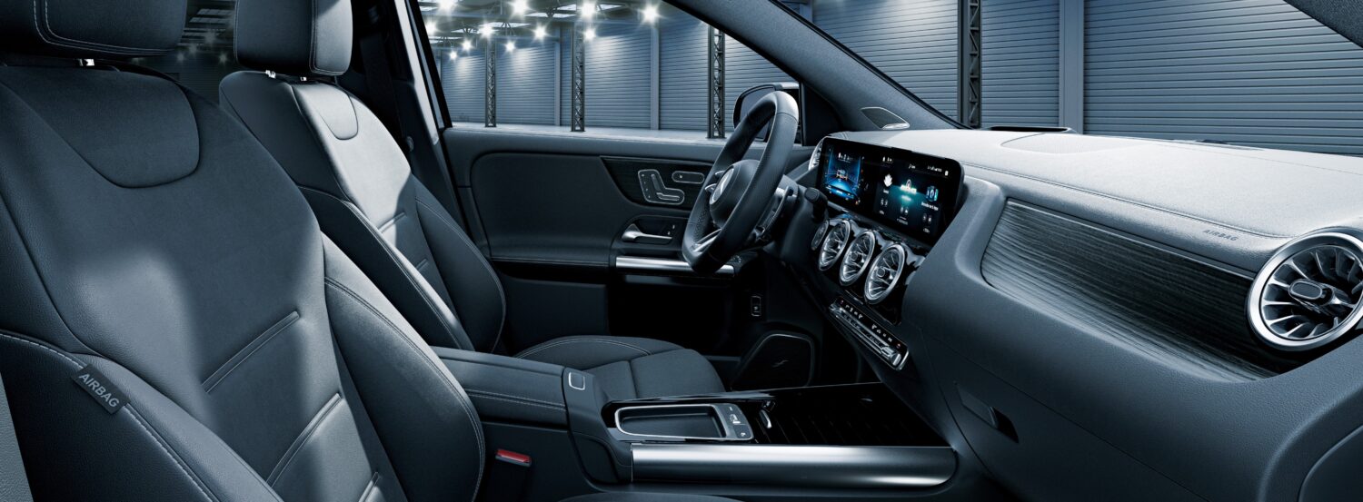 インテリアには、通常GLA35 に設定のないインテリアトリム「ブラックオープンポアウッドインテリアトリム」を採用。