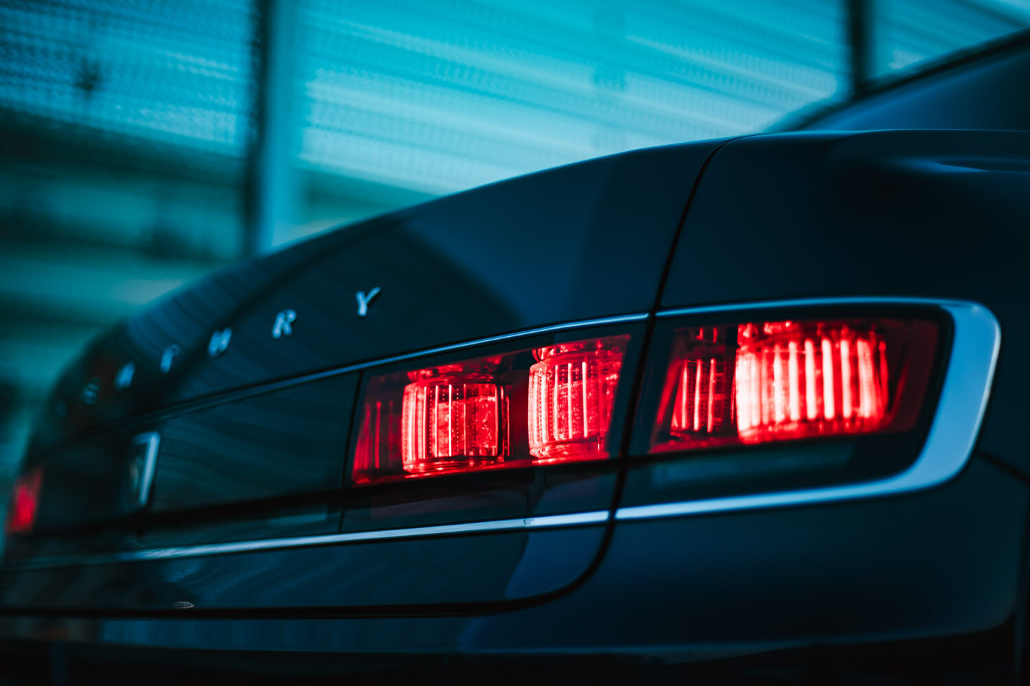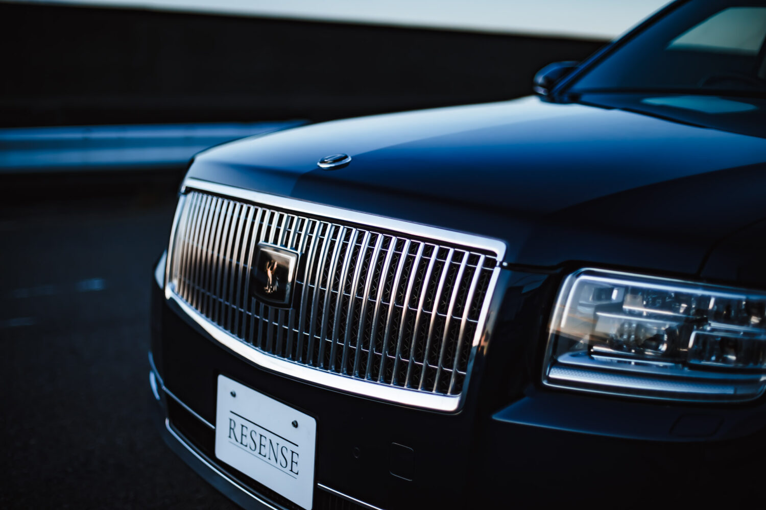 濃紺のボディは黒にも見え、光を受ければ鮮やかなブルーを見せる。その奥行きのある表情は、このクルマの品格を静かに物語ります。