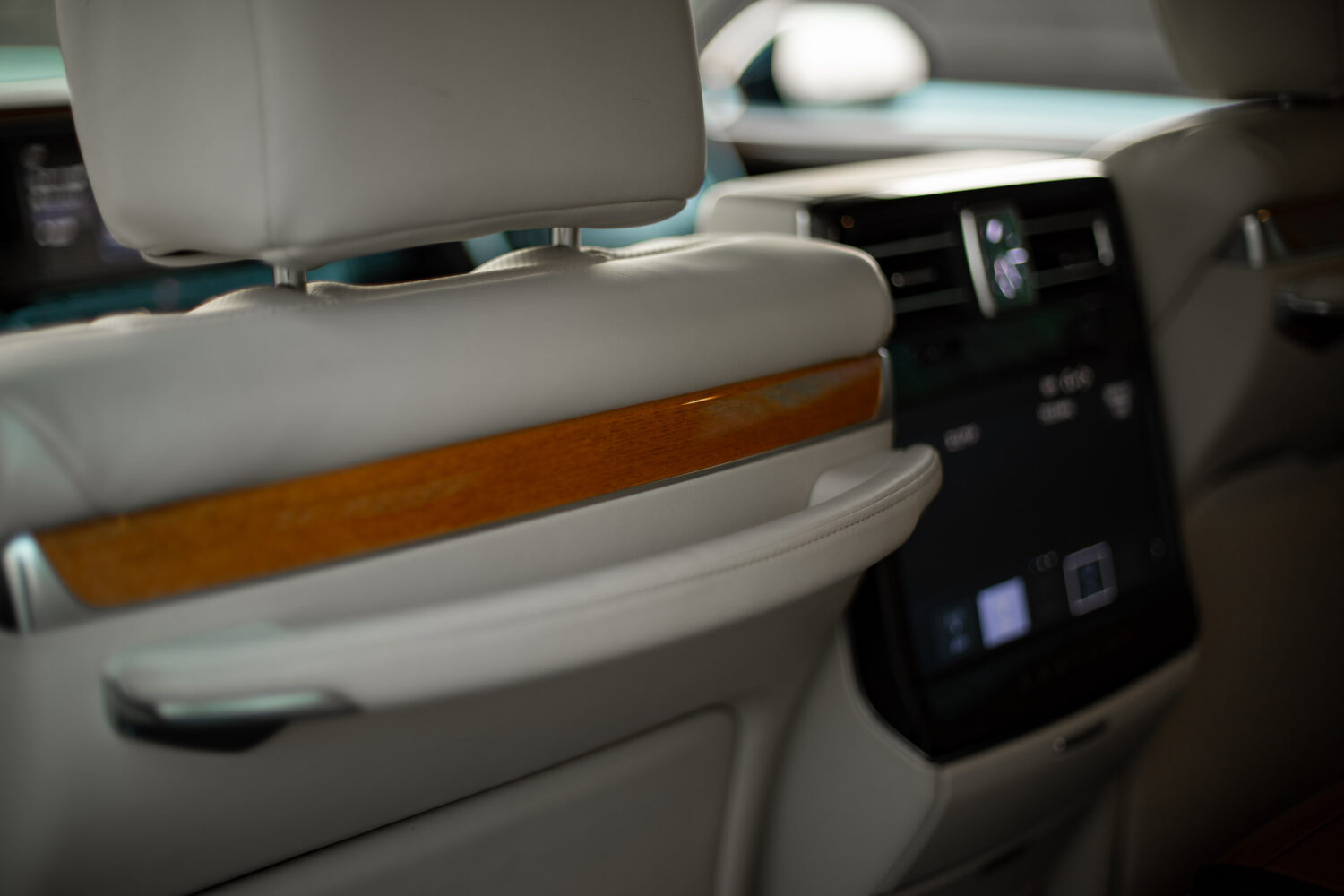 大型のリアモニターにオットマンを備え、5人乗車にも対応しながら、センターアームレストを下げれば後席専用の操作系が現れます。